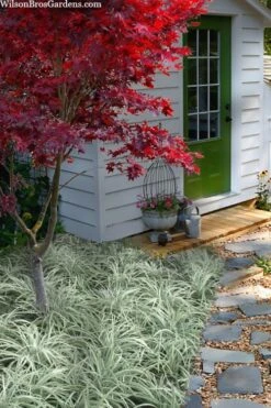 Growing about 8 to 12 inches tall and 12 to 18 inches wide, Silver Mist Mondo Grass is ideal for use as an accent in smaller garden spaces and container gardens or as a border edger along paths, walkways or landscape borders or as a groundcover for larger shade trees or underplanting for small trees such as Japanese maples. A fine addition to Asian gardens, rock gardens, shade gardens, white them gardens, woodland shade gardens, and ornamental grass gardens.