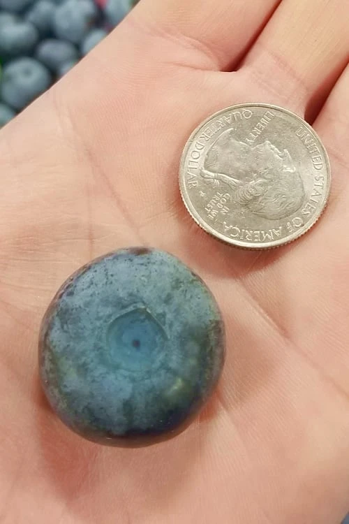 We are so delighted with these blueberries. I was worried about buying online. These plants arrived healthier than the ones locally grown! And they had blueberries on them and are still producing once planted. They are very large berries and my daughter only wants to eat these over store bought. I am so happy you provide such an amazing product! These really exceeded my expectations!——————————————————-We are so glad you are pleased and we hope you enjoy them for years to come! Thanks for the kind words and great review! 🙂 Beth Steele | WBG
